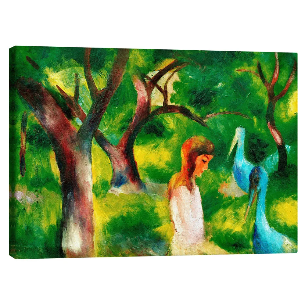 تابلو بوم کنواس طرح Mädchen mit blauen Vögeln کد 122394