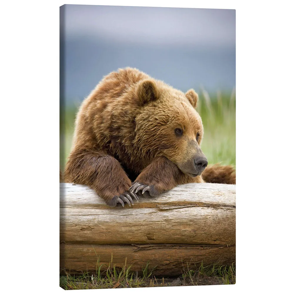 تابلو بوم کنواس طرح Brown bear is relaxing on tree trunk کد 125990
