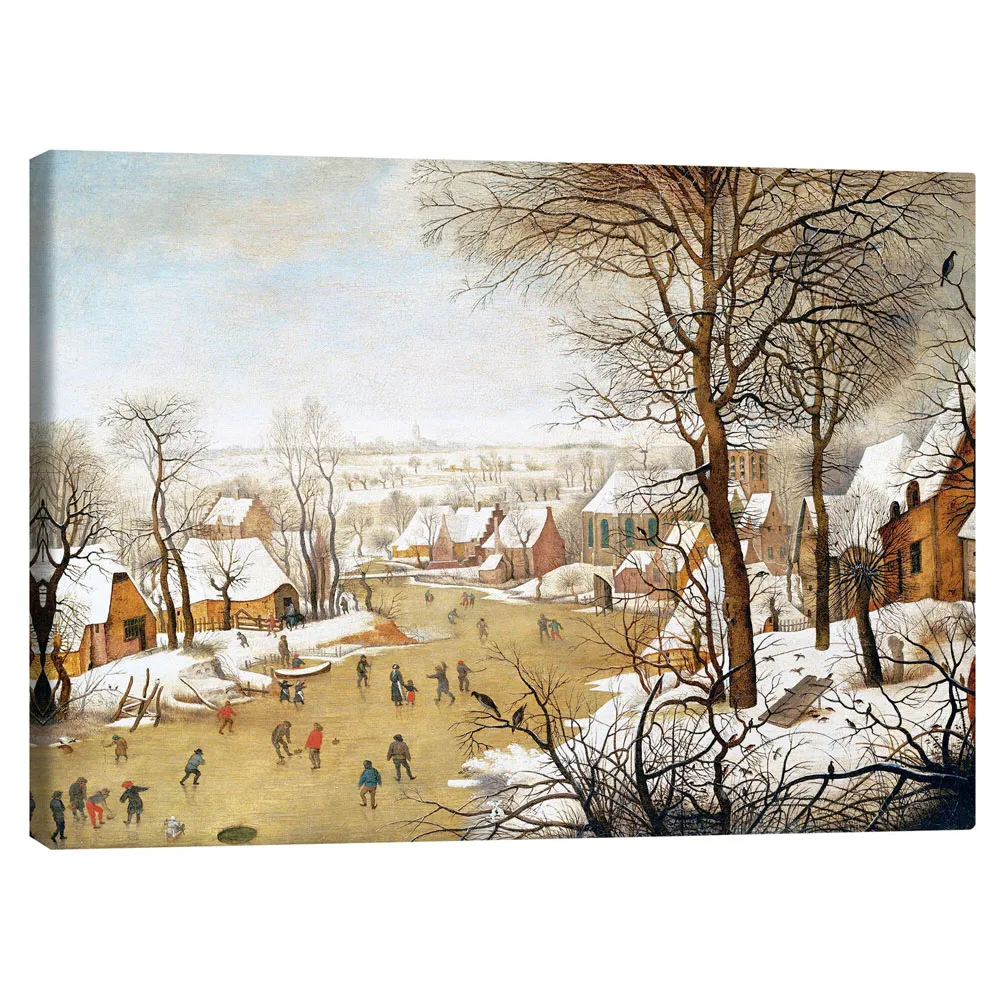 تابلو بوم کنواس طرح A Winter Landscape with Skaters and a Bird Trap کد 184491