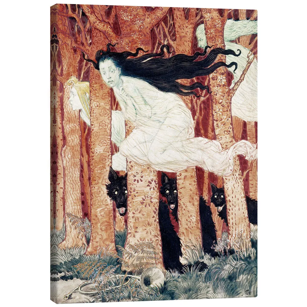 تابلو بوم کنواس طرح Three Women and Three Wolves کد 208633