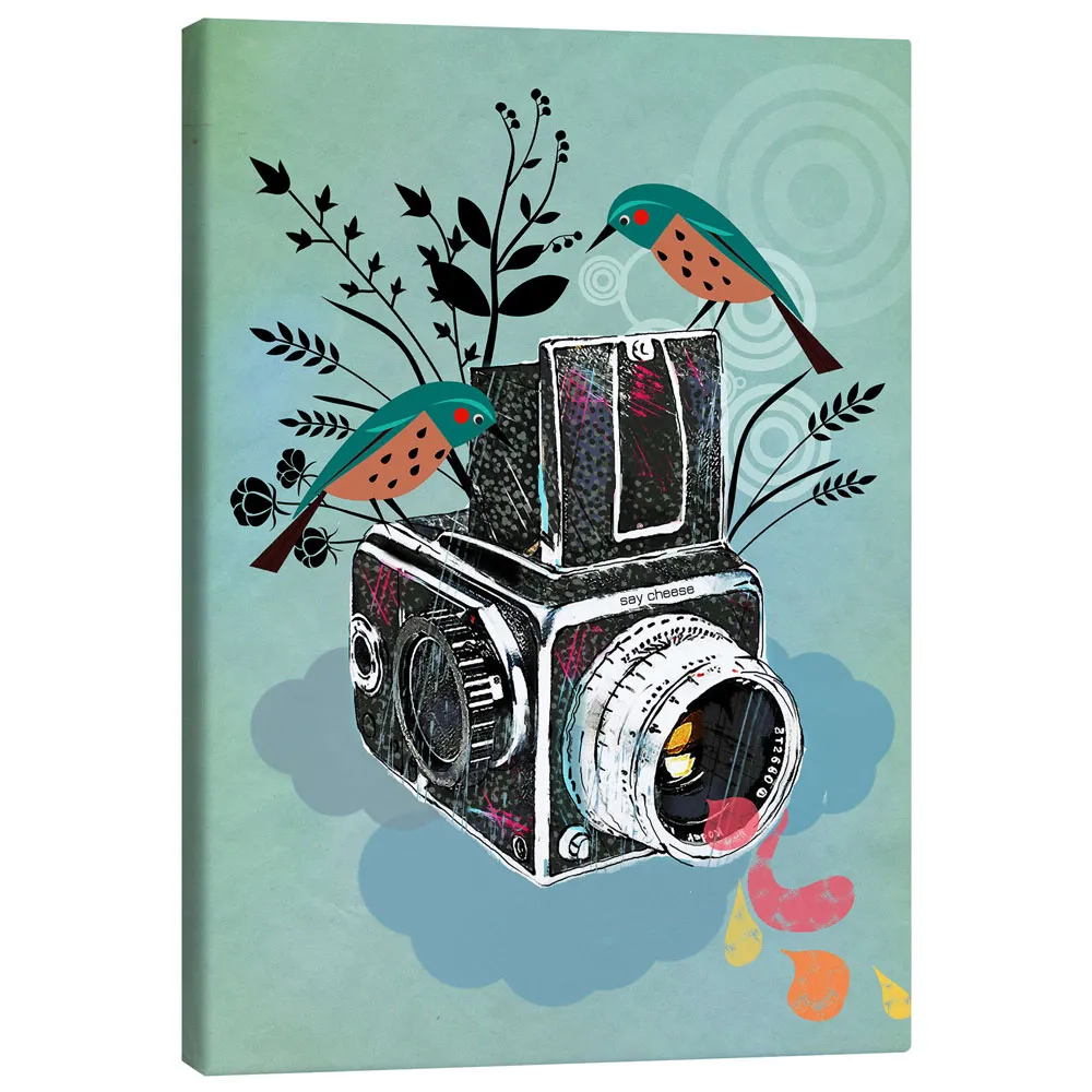 تابلو بوم کنواس طرح Vintage camera with birds کد 287241