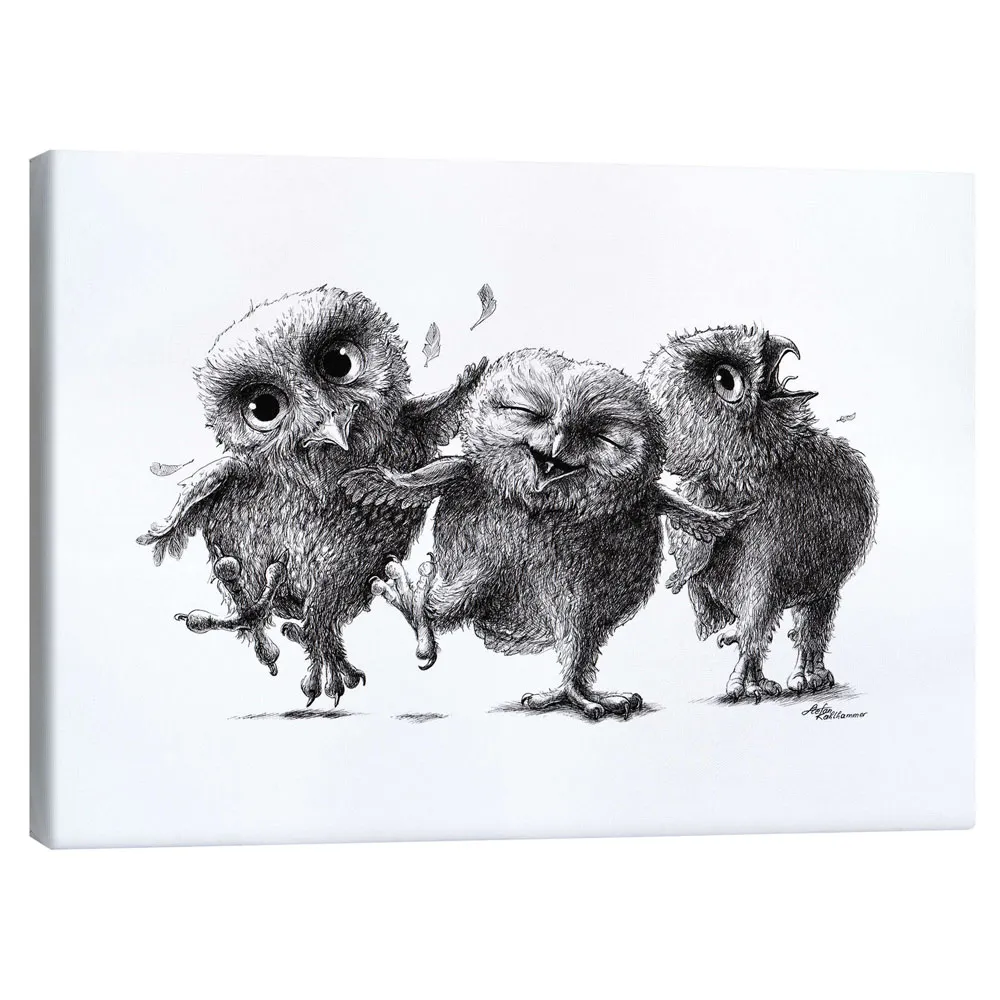 تابلو بوم کنواس طرح Three crazy owls کد 414910