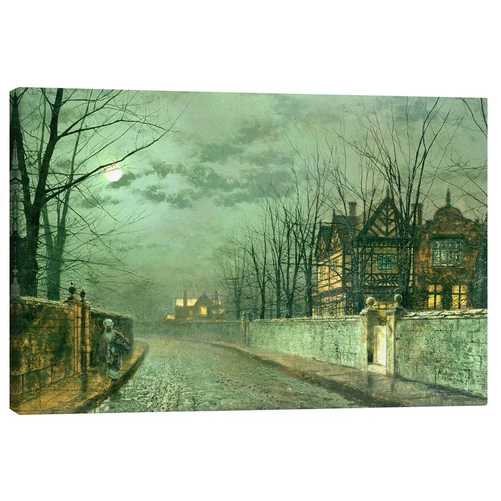تابلو بوم کنواس طرح Old English House, Moonlight after Rain کد 443254