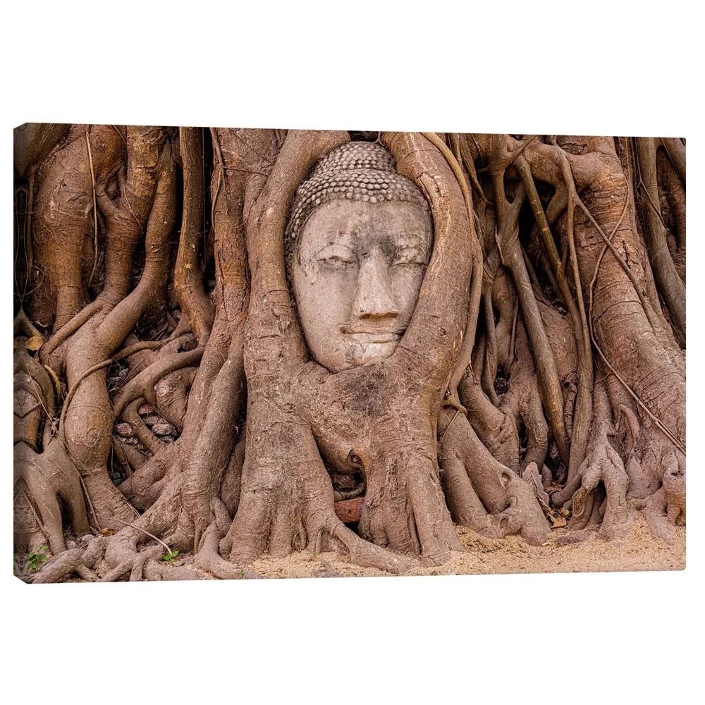 تابلو بوم کنواس طرح Buddha head sculpture Ayutthaya Thailand کد 456385