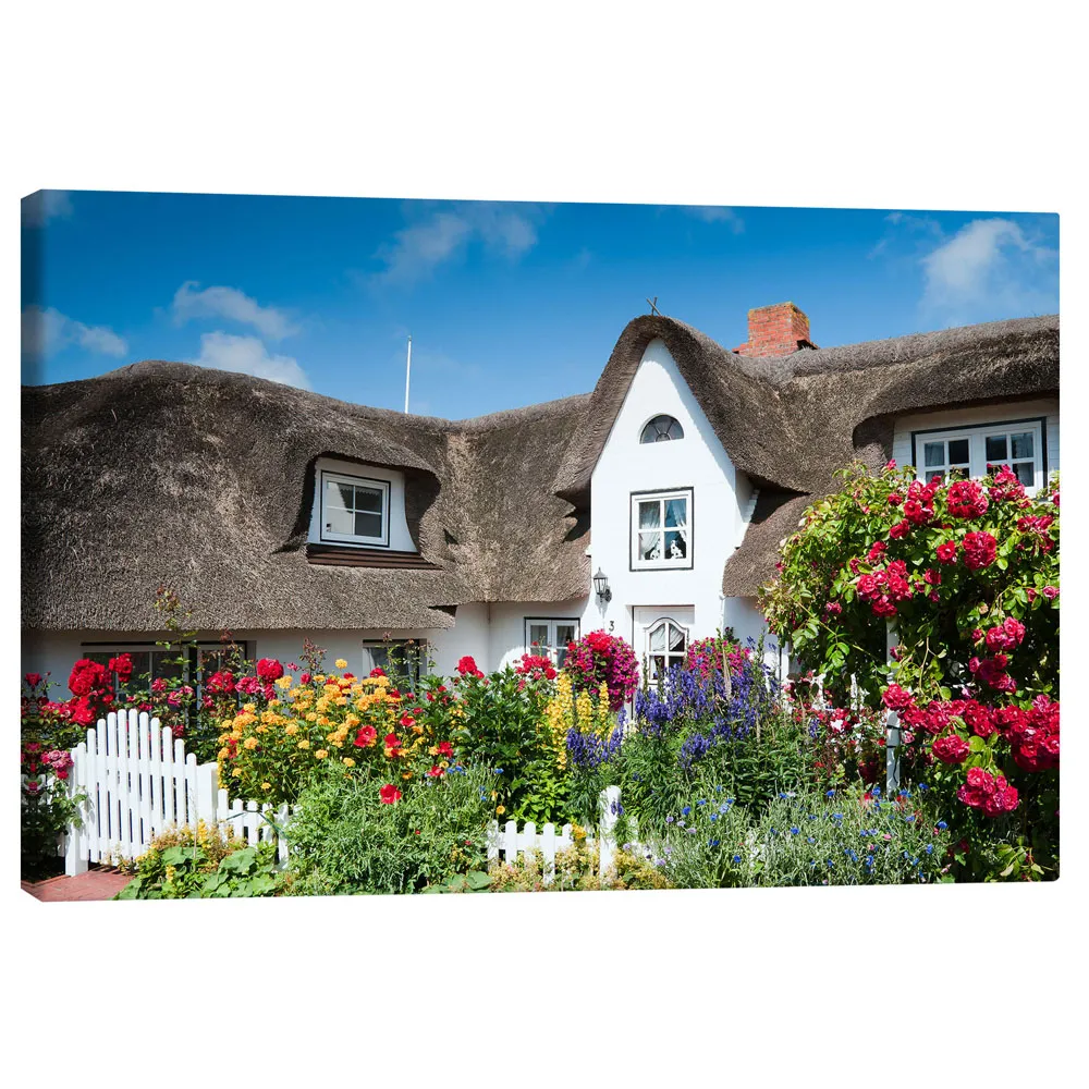 تابلو بوم کنواس طرح Amrum – thatched house with flower garden کد 470858