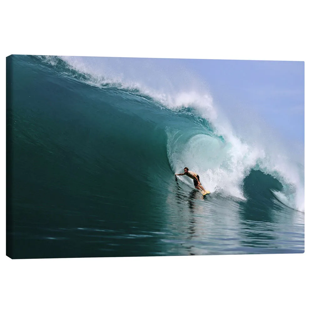 تابلو بوم کنواس طرح Surfing in a huge green wave, tropical island paradise کد 502219