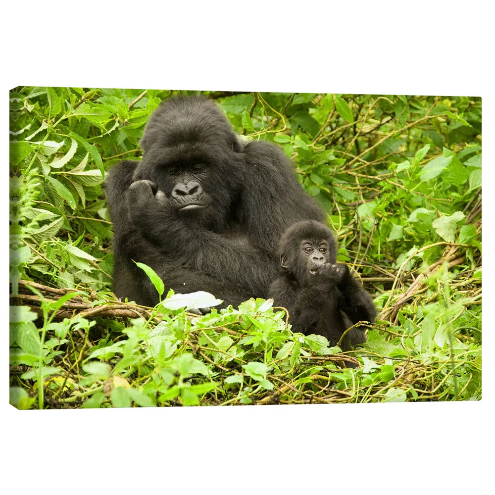 تابلو بوم کنواس طرح Gorilla with baby in the green کد 580547