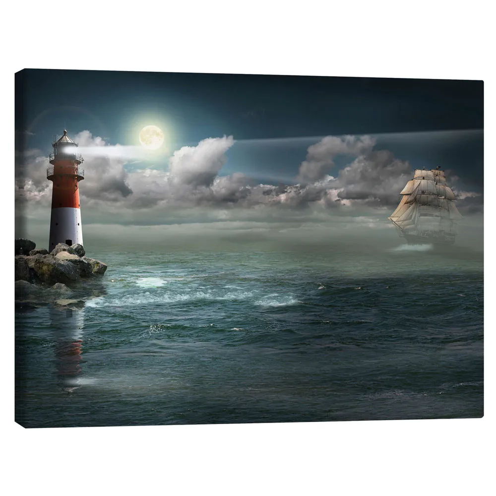 تابلو بوم کنواس طرح Lighthouse under illumination کد 682144