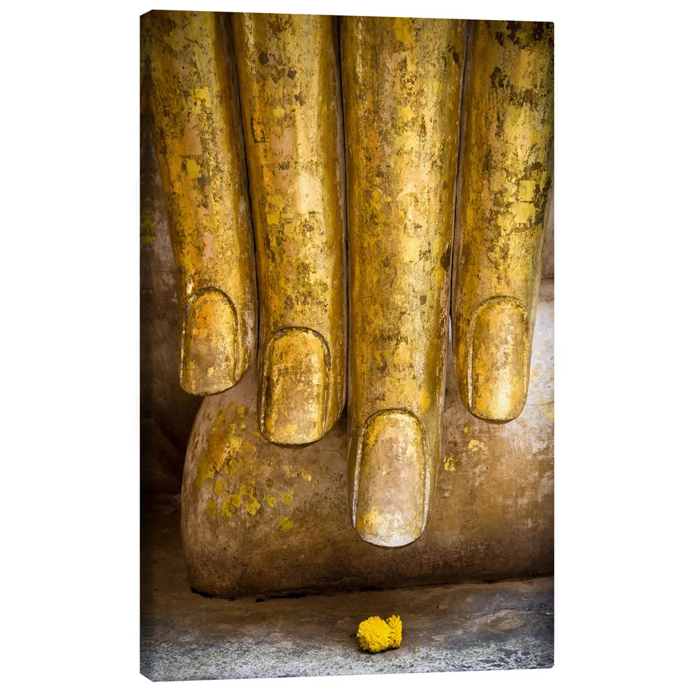تابلو بوم کنواس طرح Golden fingers of a Buddha statue کد 688866