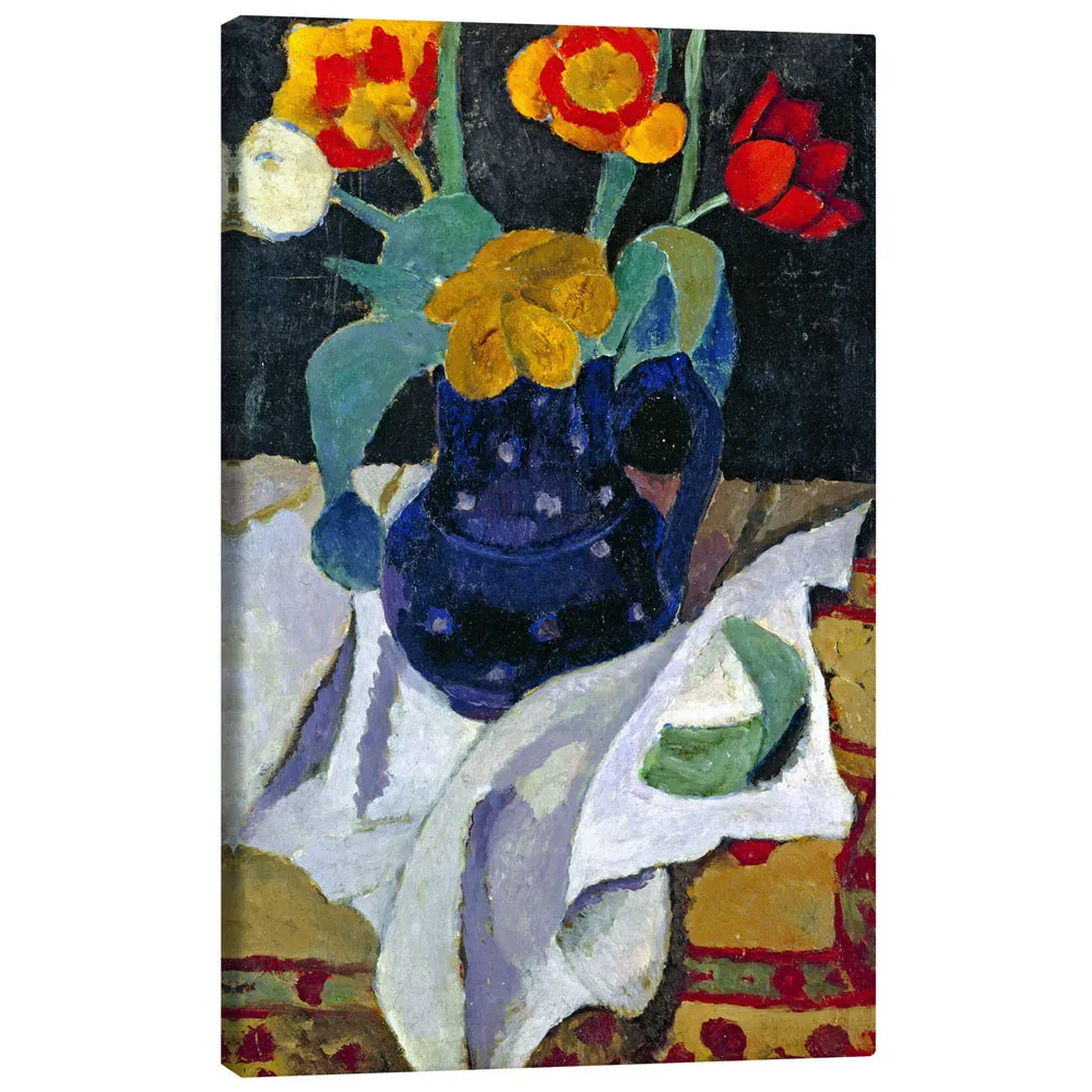 تابلو بوم کنواس طرح Still life with tulips in a blue pot کد 781403