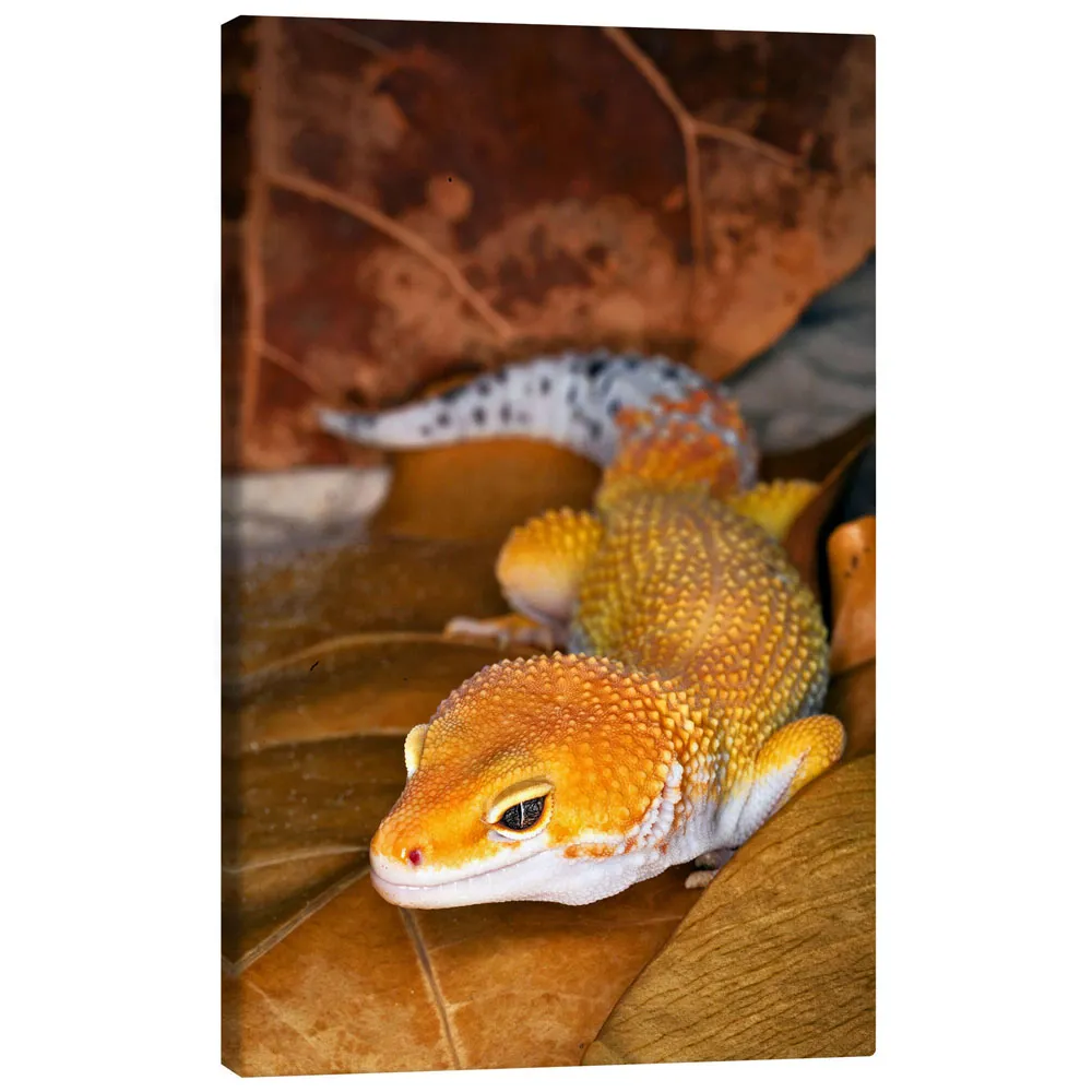 تابلو بوم کنواس طرح Leopard gecko between leaves کد 785743