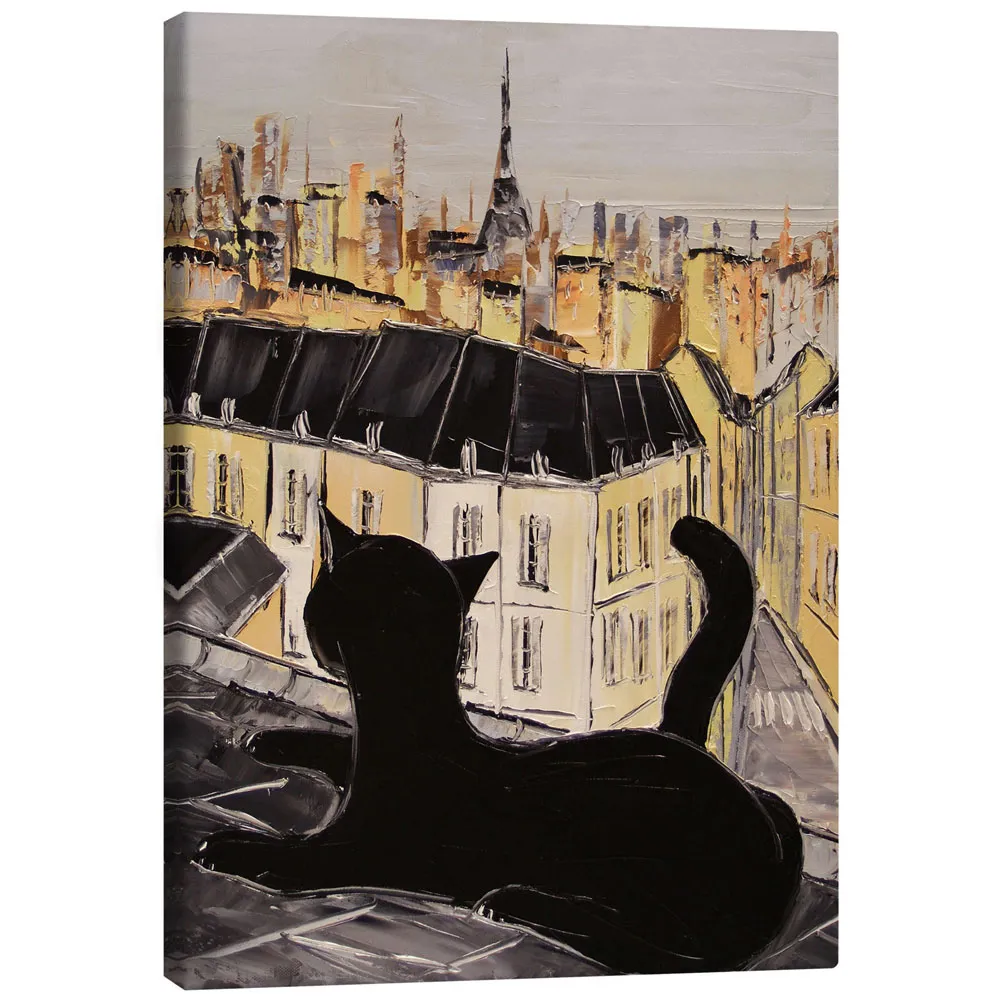 تابلو بوم کنواس طرح Black cat on the roofs of Paris کد 810526