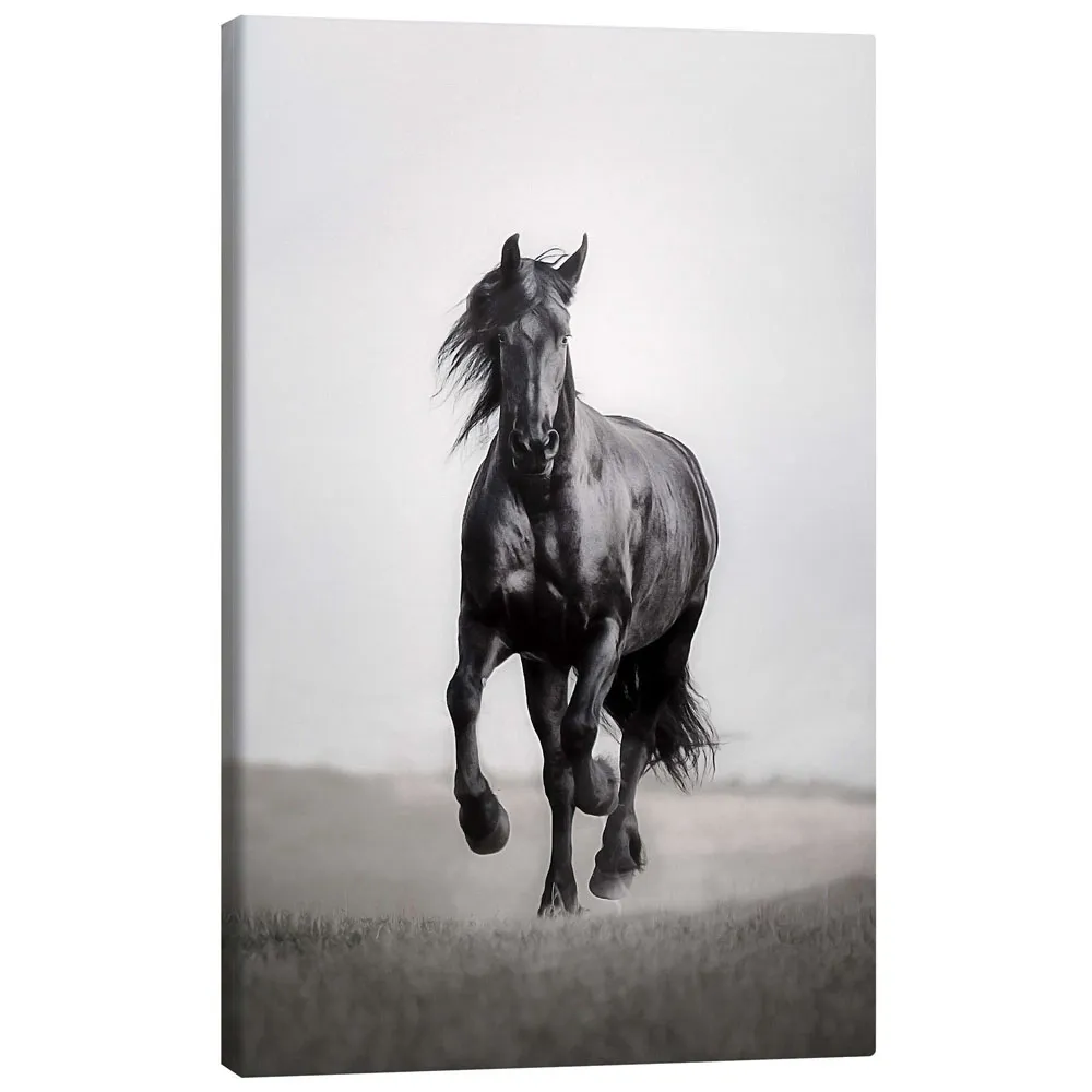 تابلو بوم کنواس طرح Horse Friesian in the steppe کد 855053