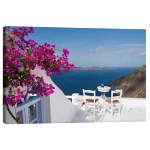 تابلو بوم کنواس طرح Hotel terrace with pink flowers and stunning views کد 920652