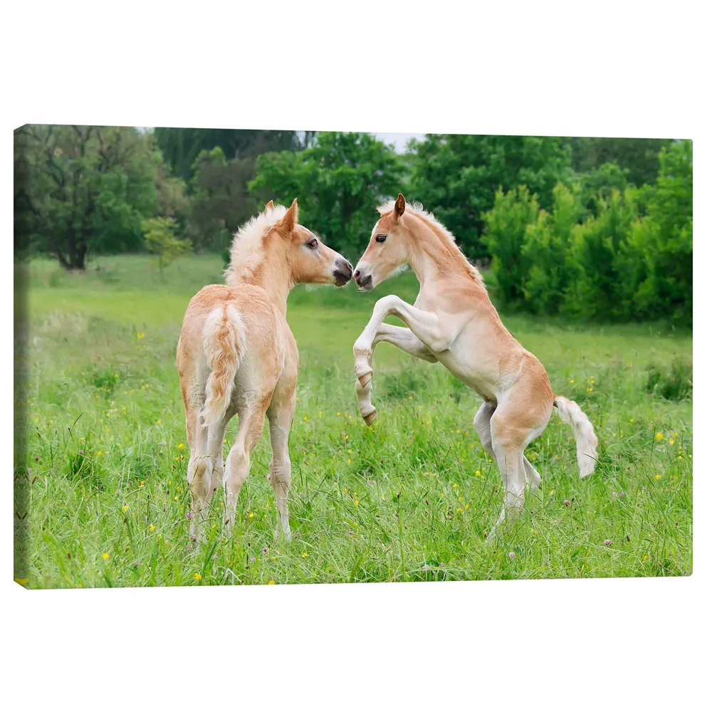 تابلو بوم کنواس طرح Haflinger foals playing and rearing کد 945664