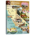 تابلو بوم کنواس طرح Vintage California Map Collage Poster on wooden background کد 960394
