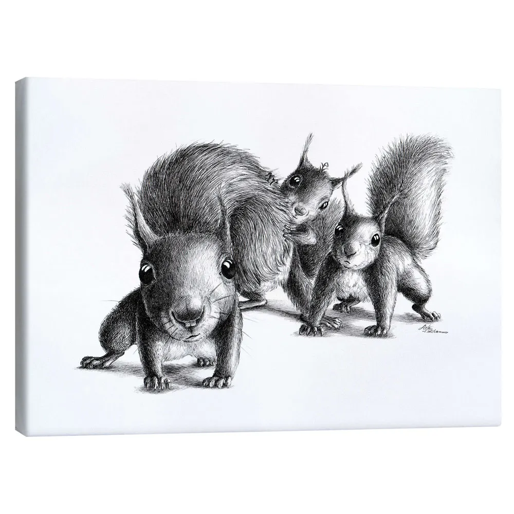 تابلو بوم کنواس طرح Three squirrels کد 989208