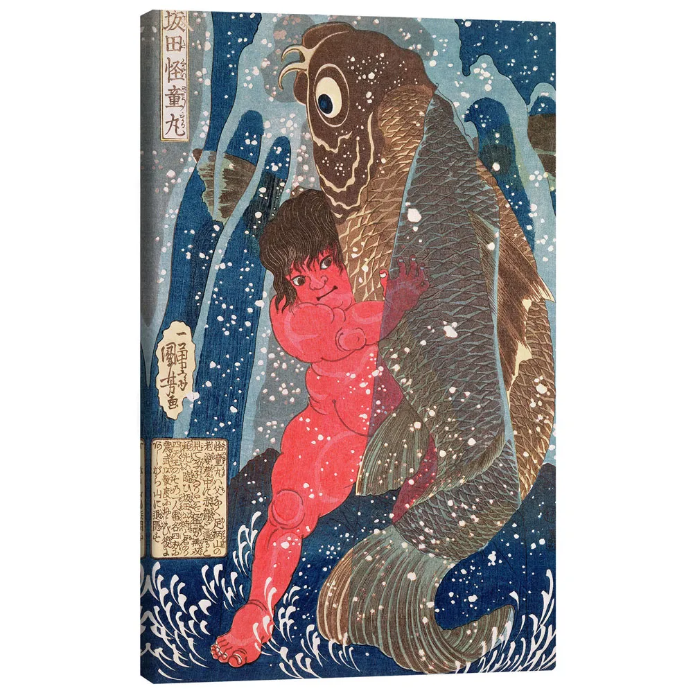 تابلو بوم کنواس طرح Kintoki swims up on the waterfall کد 996865