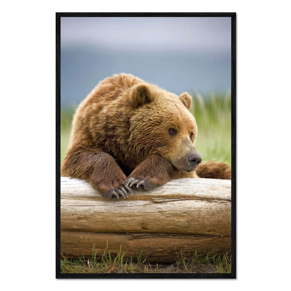 تابلو قاب دار طرح Brown bear is relaxing on tree trunk کد 125990