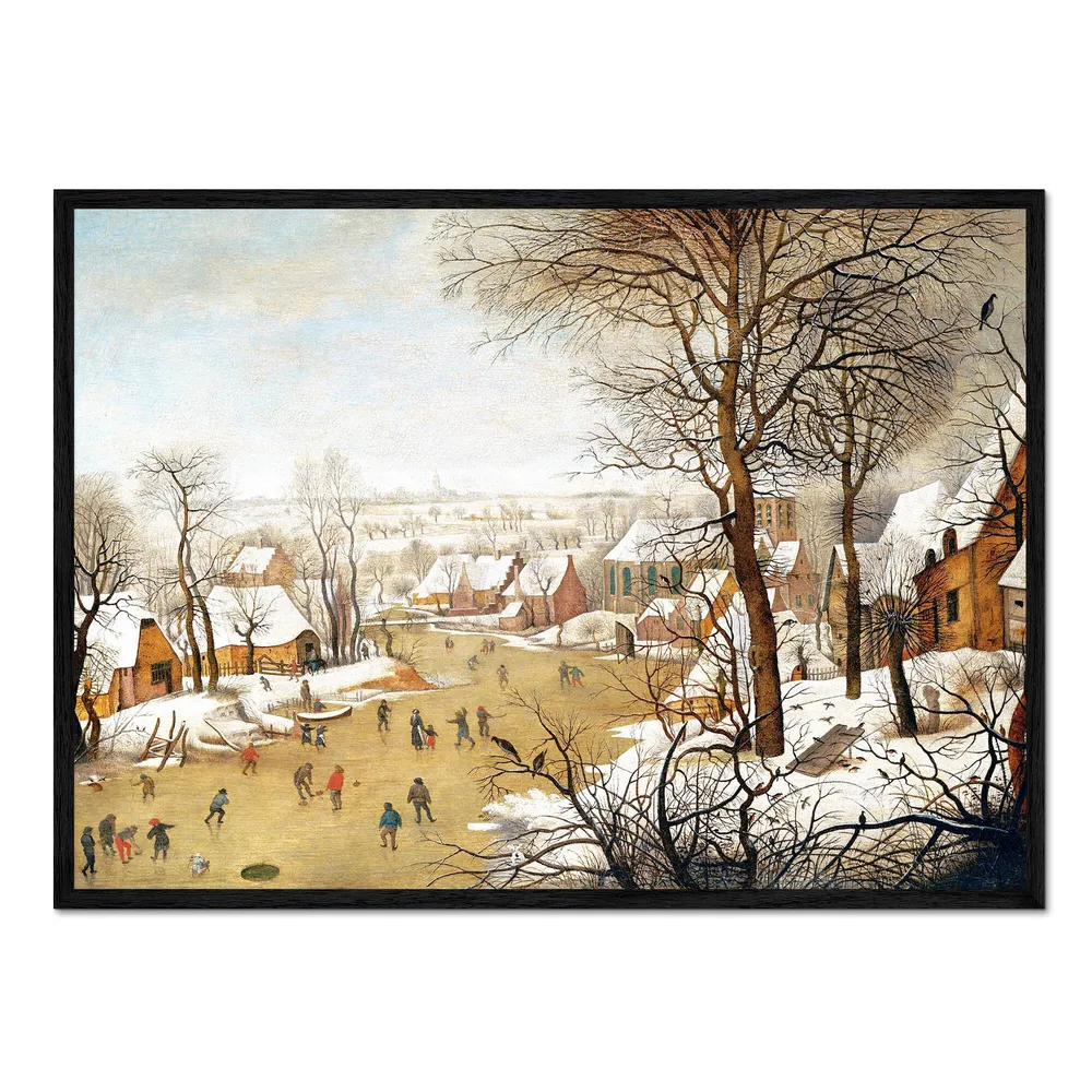 تابلو قاب دار طرح A Winter Landscape with Skaters and a Bird Trap کد 184491