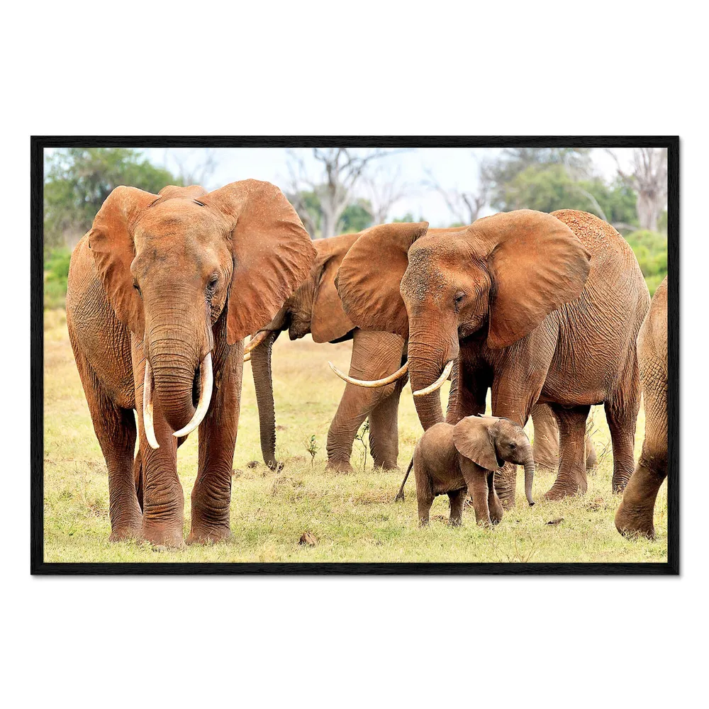 تابلو قاب دار طرح Playful elephant baby with family کد 185544