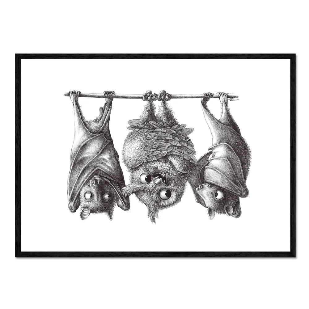 تابلو قاب دار طرح Vampire – Owl and Two Bats کد 188914