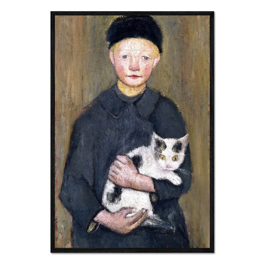 تابلو قاب دار طرح Boy with a cat کد 194769