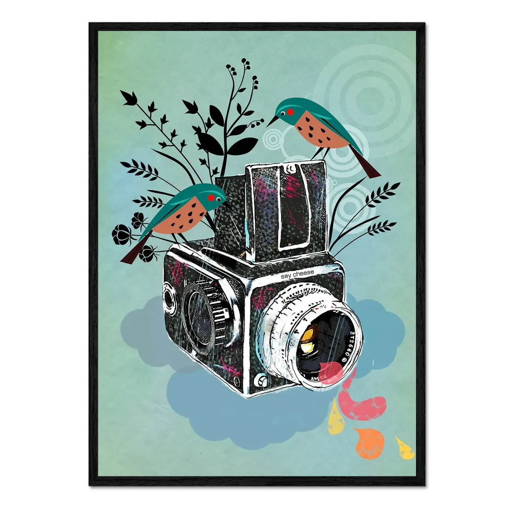 تابلو قاب دار طرح Vintage camera with birds کد 287241