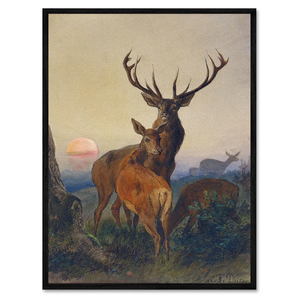 تابلو قاب دار طرح A Stag with Deer at Sunset کد 331251