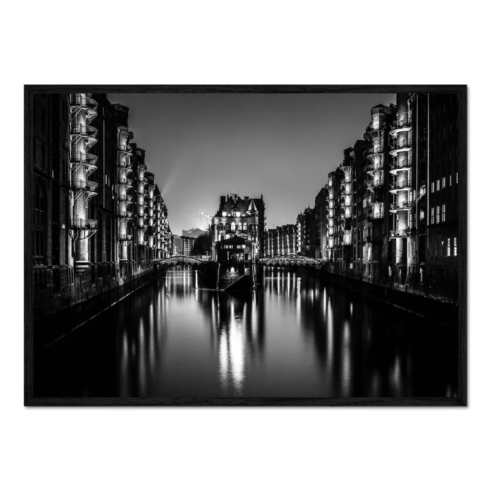 تابلو قاب دار طرح Hamburg by night (monochrome) کد 409478
