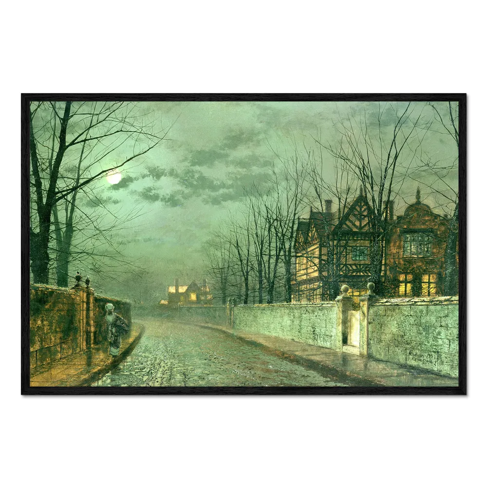 تابلو قاب دار طرح Old English House, Moonlight after Rain کد 443254