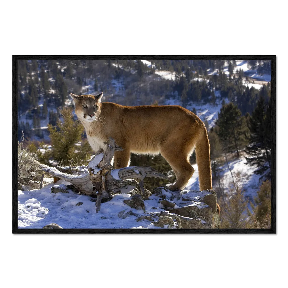 تابلو قاب دار طرح Puma in snowy mountains کد 466643