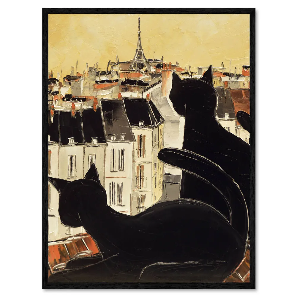 تابلو قاب دار طرح Black cats on Parisian roof کد 499889