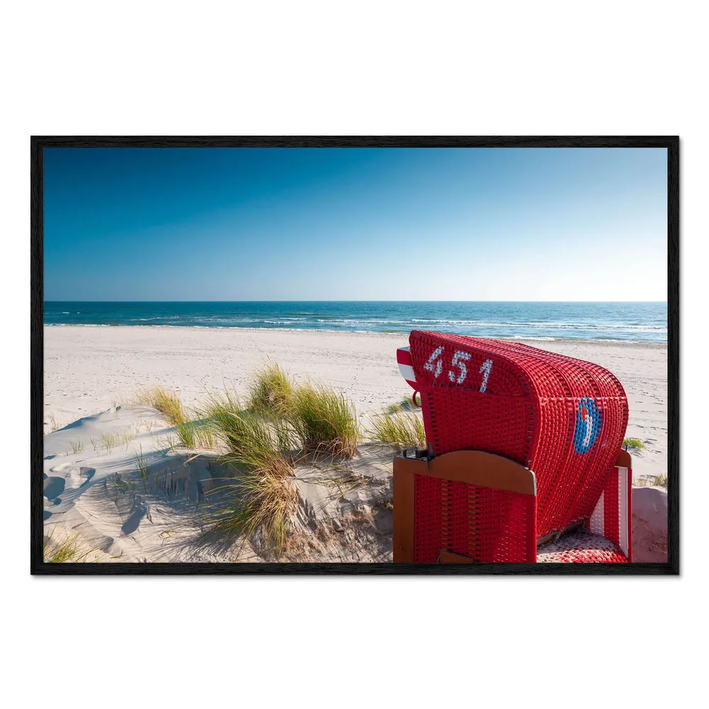 تابلو قاب دار طرح Red beach chair with a view کد 544920