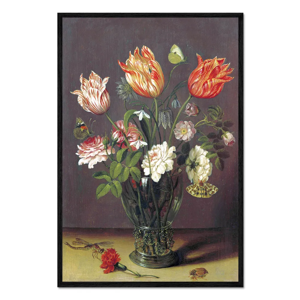 تابلو قاب دار طرح Tulips with other Flowers in a Glass on a Table کد 611945