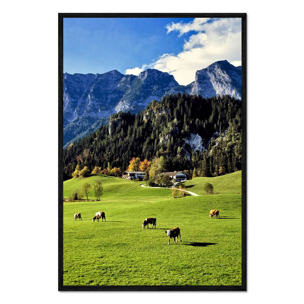 تابلو قاب دار طرح Alpine views with forest and pasture کد 678478
