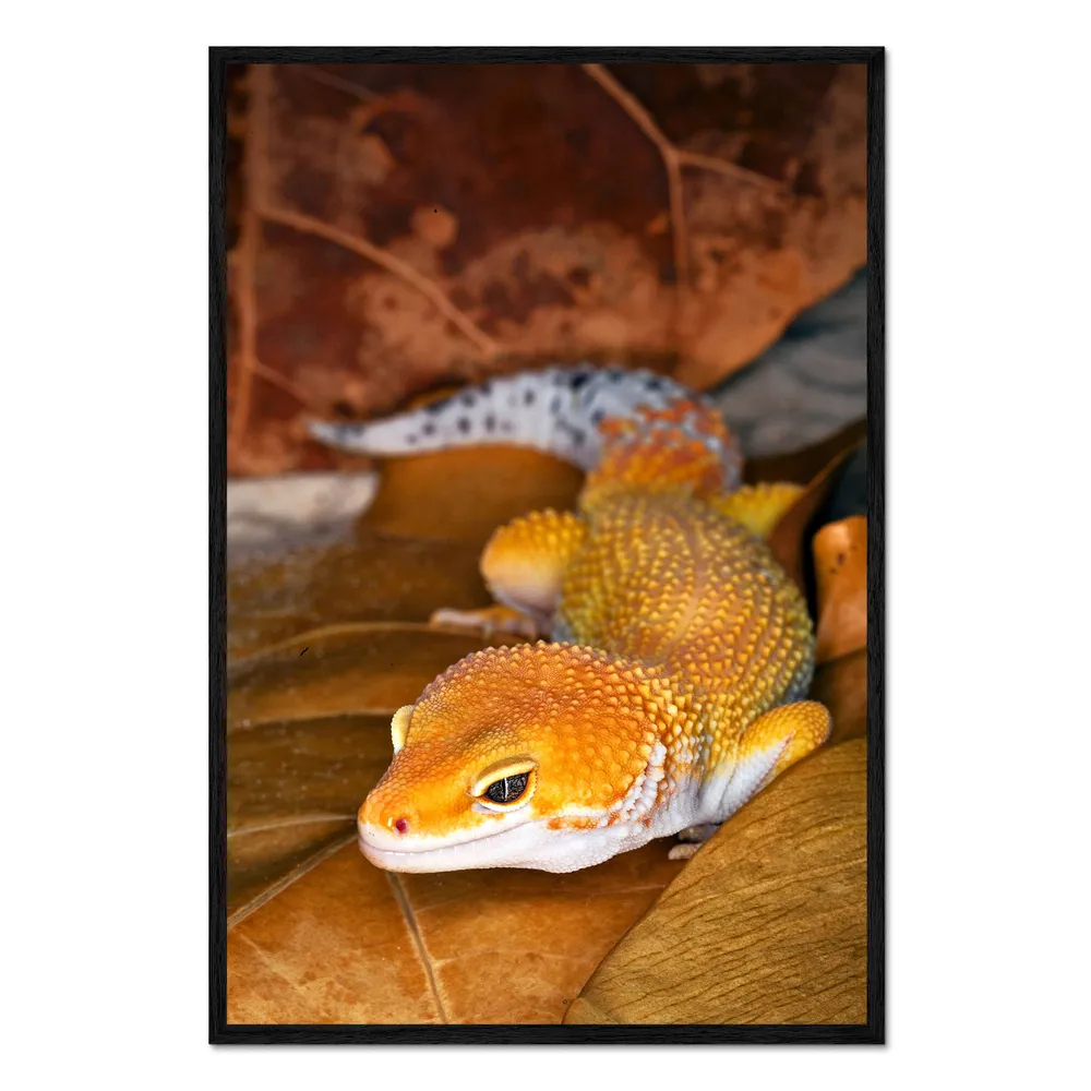 تابلو قاب دار طرح Leopard gecko between leaves کد 785743