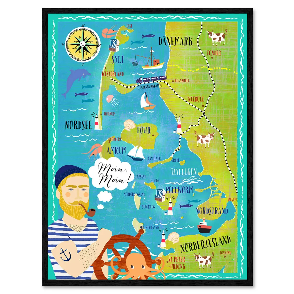 تابلو قاب دار طرح Colorful map Nordfriesland کد 823846