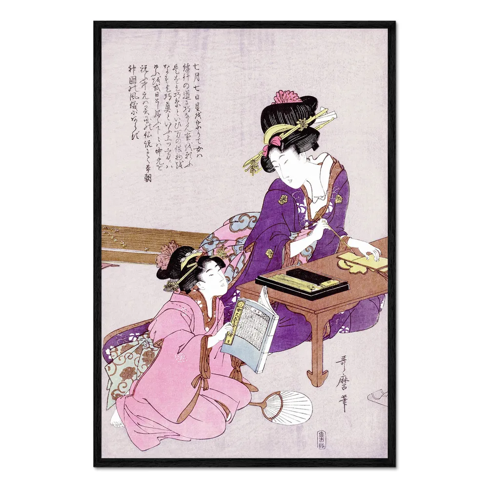 تابلو قاب دار طرح Woman is sitting at the desk and a girl is watching her کد 902784