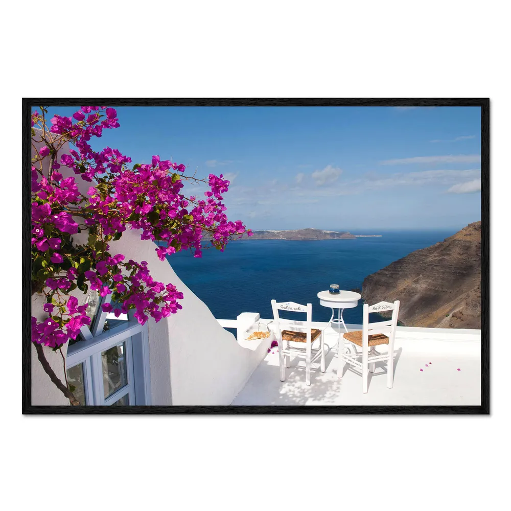 تابلو قاب دار طرح Hotel terrace with pink flowers and stunning views کد 920652