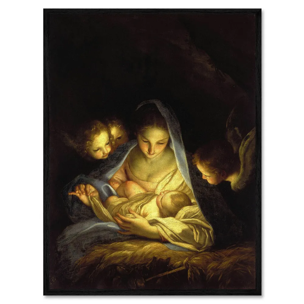 تابلو قاب دار طرح Mary with the Christ child bent over the crib کد 931016