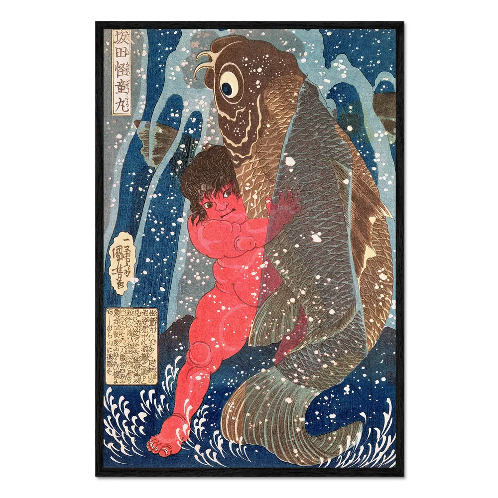 تابلو قاب دار طرح Kintoki swims up on the waterfall کد 996865