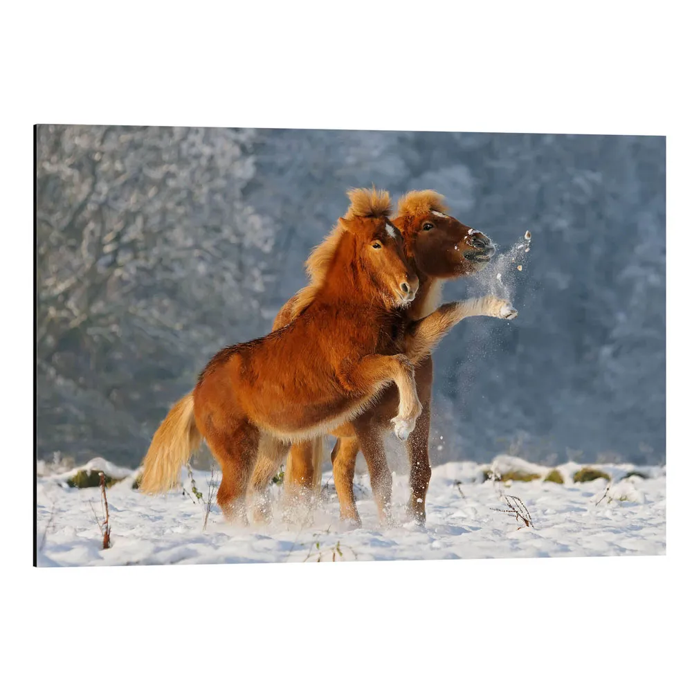 تابلو شاسی طرح Icelandic horses foal playing in snow کد 369452