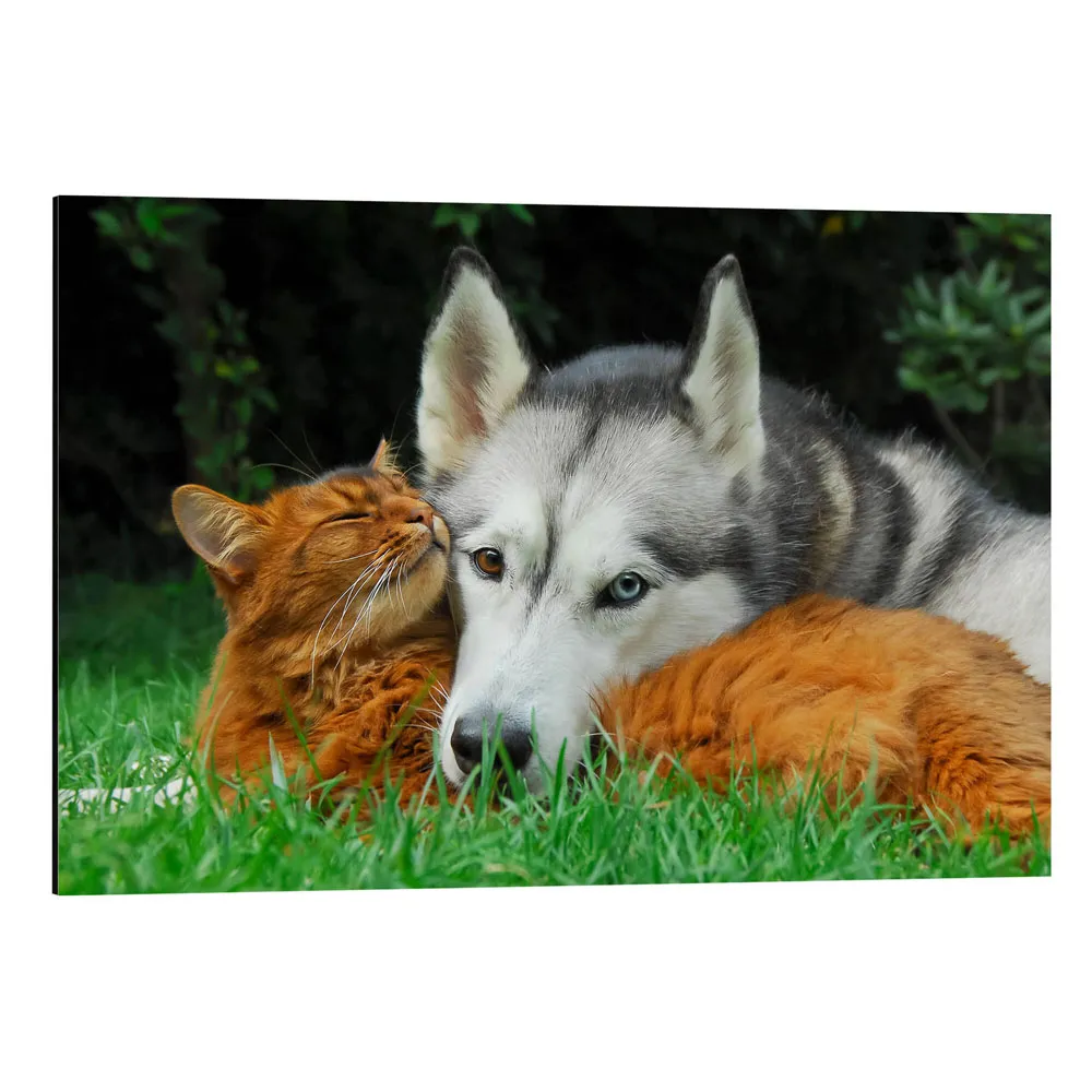 تابلو شاسی طرح Somali cat and Siberian Husky cuddle up together کد 502630